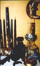 ![]() Heute wird die Aromatherapie angewandt, um Stress und Verspannungen zu lösen. Das ganze Allgemeinbefinden kann durch bestimmte ätherische Öle verbessert werden. Und zwar nicht nur durch das Einatmen der Gerüche, sondern auch durch die Haut - z.B. beim Baden. Durch ihre kleinmolekulare Struktur können ätherische Öle leicht die Haut durchdringen und so ihre Wirkung zur Entfaltung bringen. Je nachdem, welche Beschwerden man behandeln will, stehen uns eine Vielzahl von ätherischen Ölen zur Verfügung. Im Prinzip gibt es von allen Pflanzen, die ich auf der Seite Hexenkräuter beschrieben habe, auch die ätherischen Öle. Bei den Ölen gibt es aber auch noch einige ausgefallene Düfte, wie z.B. Patschuli (der Modeduft der 70er Jahre), Sandelholz, Jasmin, Rosenöl oder z.B. Ylang-Ylang (der Liebesduft :-). Ich möchte aber auch nicht versäumen, darauf hinzuweisen, dass ätherische Öle allergische Reaktionen auslösen können. Wer zu Allergien neigt, der sollte damit vorsichtig umgehen. ![]() Das Räuchern ist von der Wirkung her ganz ähnlich, wie die Duftlampen, die mit ätherischen Ölen gefüllt werden. Wie bei der Aromatherapie soll auch durch das Räuchern das Raumklima verbessert und unsere Nerven stimmuliert werden von einem bestimmten Wirkstoff. Dennoch ist das Räuchern etwas ganz anderes. Es erfordert einen viel größeren Aufwand an Zeit und Geduld. Bis die Räucherkohle entzündet und soweit abgebrannt ist, dass man mit der Räucherung beginnen kann, vergeht einige Zeit. Das Räuchern ist eine Zeremonie und deshalb für Hexen, die Rituale natürlich lieben, besonders geeignet. Und die Räucherungen sind darüberhinaus auch gleichzeitig sakrale Botschaften an den Himmel. Nicht nur die katholische Kirche entzündet Weihrauch, um Gott zu ehren. Auch Hexen ehren ihre Göttinnen durch Räucherungen. Durchaus auch mit Weihrauch. Er ist überhaupt mein Lieblingsduft. Weihrauch reinigt die Atmosphäre, vertreibt böse Geister :-) ... und er riecht einfach himmlisch gut. Damit man mit dem Räuchern beginnen kann, benötigt man als Grundausstattung: eine feuerfeste Schale etwas Sand Räucherkohle und eine Pinzette (damit man die heiße Kohle anfassen kann) Die entzündete Kohle wird in die mit Sand gefüllte Schale gelegt und soweit abgebrannt, bis sie nur noch glimmt. Zum Räuchern eignen sich getrocknete Rosenblätter, Lavendel, Beifuss, Mayoran und überhaupt die meisten Kräuter in getrockneter Form oder aber man besorgt sich fertige Räuchermischungen (in Teeläden und Esoterikläden erhältlich). Zurück zum Überblick Herstellung von Badeölen